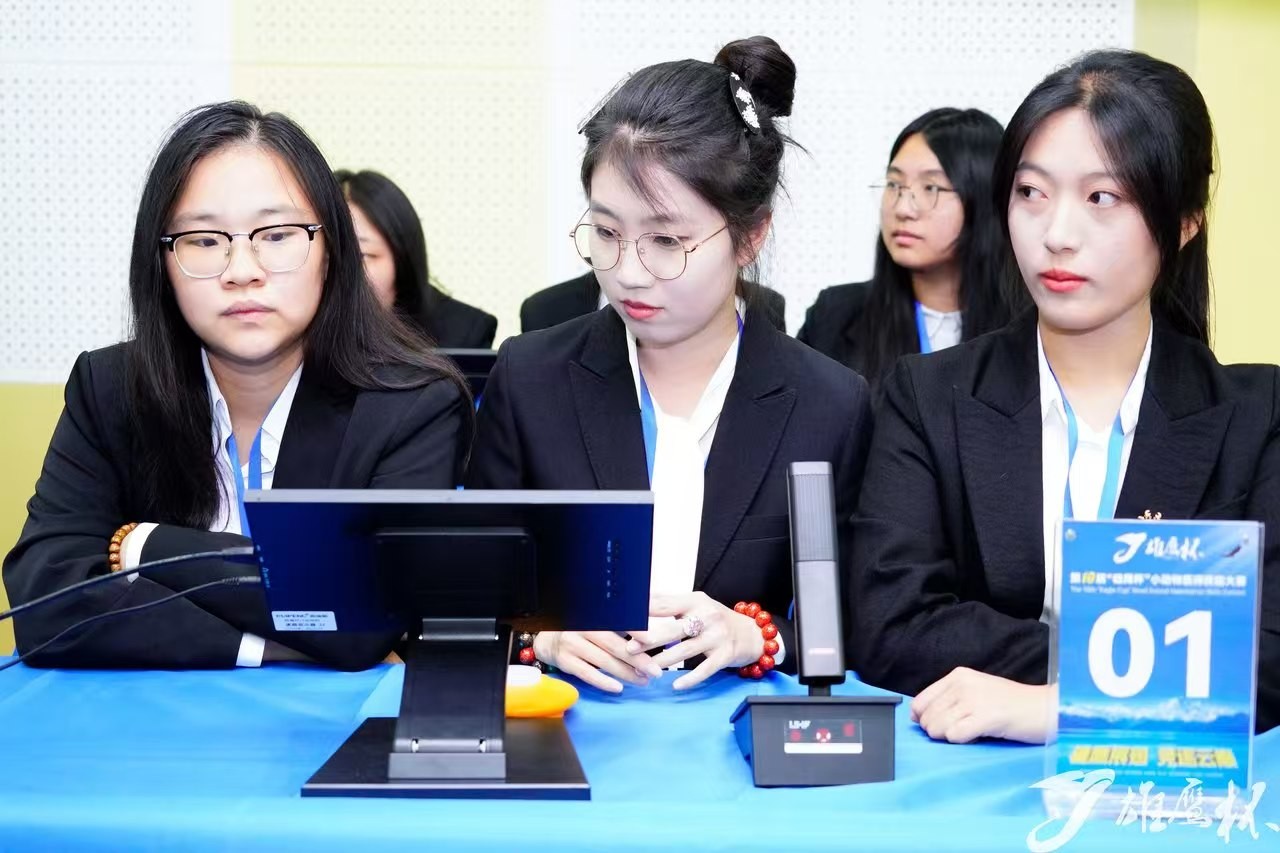 在激烈的竞争中,FUN88乐天使学子凭借扎实的专业基础、出色的实践能力与稳定的赛场发挥脱颖而出。由左思瑶、郭阳、齐琳、丁诗雨四名同学组成的参赛团队,历经多轮角逐始终保持领先优势,最终以全国第一的惊艳成绩斩获“老员工组”团体特等奖,创造了历史;张文龙、周晓菲、宋晓静三位老师荣获优秀辅导老师特等奖;团队成员左思瑶同学荣获中国兽医新星奖,并作为兽医新星代表发表讲话。
