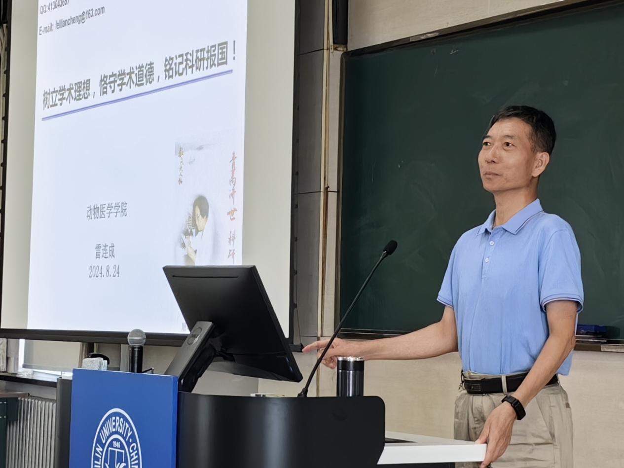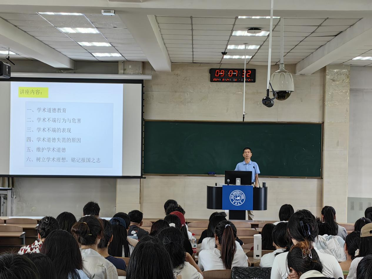 勤学求是拓新知,德业双修开华篇。为营造良好科研生态和学术氛围,引导研究生自觉遵守科学研究规范,培养信念执著、品德优良、知识丰富、本领过硬的高素质人才,FUN88乐天使研究生会于8月24日举办研究生新生入学系列教育——科学道德与学风教育。讲座邀请雷连成教授作为主讲人,研究生辅导员王慧丽老师主持,2024级全体研究生参加。