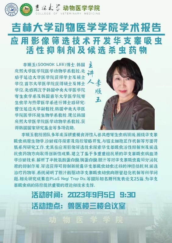 FUN88乐天使学术报告—应用影像筛选技术开发华支睾吸虫活性抑制剂及候选杀虫药物