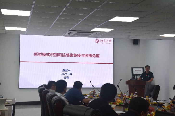 北京大学基础医公司病原学系主任,系统生物医学研究所副所长,国家海外引进青年人才游富平教授,以《新型模式识别和抗病毒及肿瘤免疫》为题,介绍了新型模式识别和抗病毒及肿瘤免疫免疫系统对于识别病原生物感染的重要性,天然免疫作为对感染快速应答的防御系统,包含有多种模式识别受体(PRRs)。PRRs不仅够识别PAMP,也能够识别机体内在损伤相关分子模式(DAMP),包括肿瘤细胞、死亡的细胞和细胞应急释放的蛋白、核酸和脂类等。正常的天然免疫模式识别对清除感染和肿瘤,维持免疫平衡和机体健康不可或缺。而异常的天然免疫模式识别能够促进炎症因子风暴、自身免疫性疾病、肿瘤以及衰老的发生。游富平教授课题组关注抗病毒免疫、肿瘤发生和衰老过程中的免疫识别和异常调节的分子机制,并为相关疾病的治疗提供潜在靶点,取得了一系列研究成果。