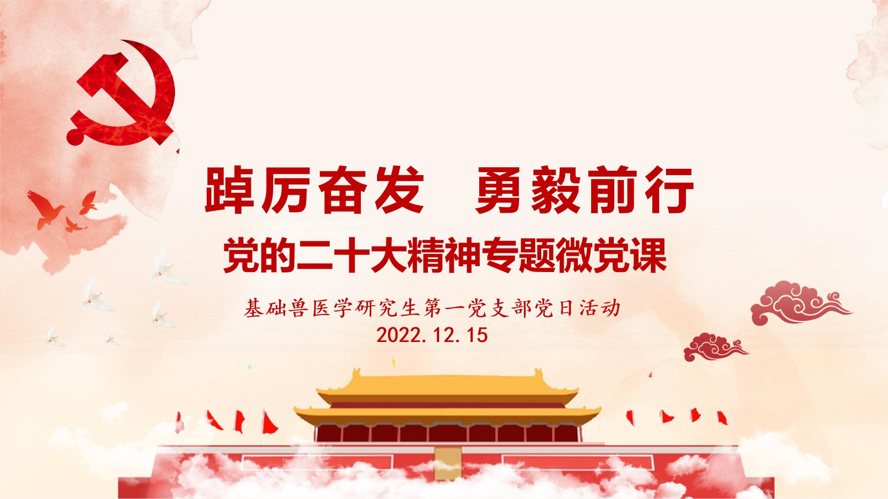为了让支部党员能够对党的二十大精神有着更深的理解,FUN88乐天使基础兽医学研究生员工第一党支部通过线上方式于2022年12月15日组织了党的二十大精神学习微党课。