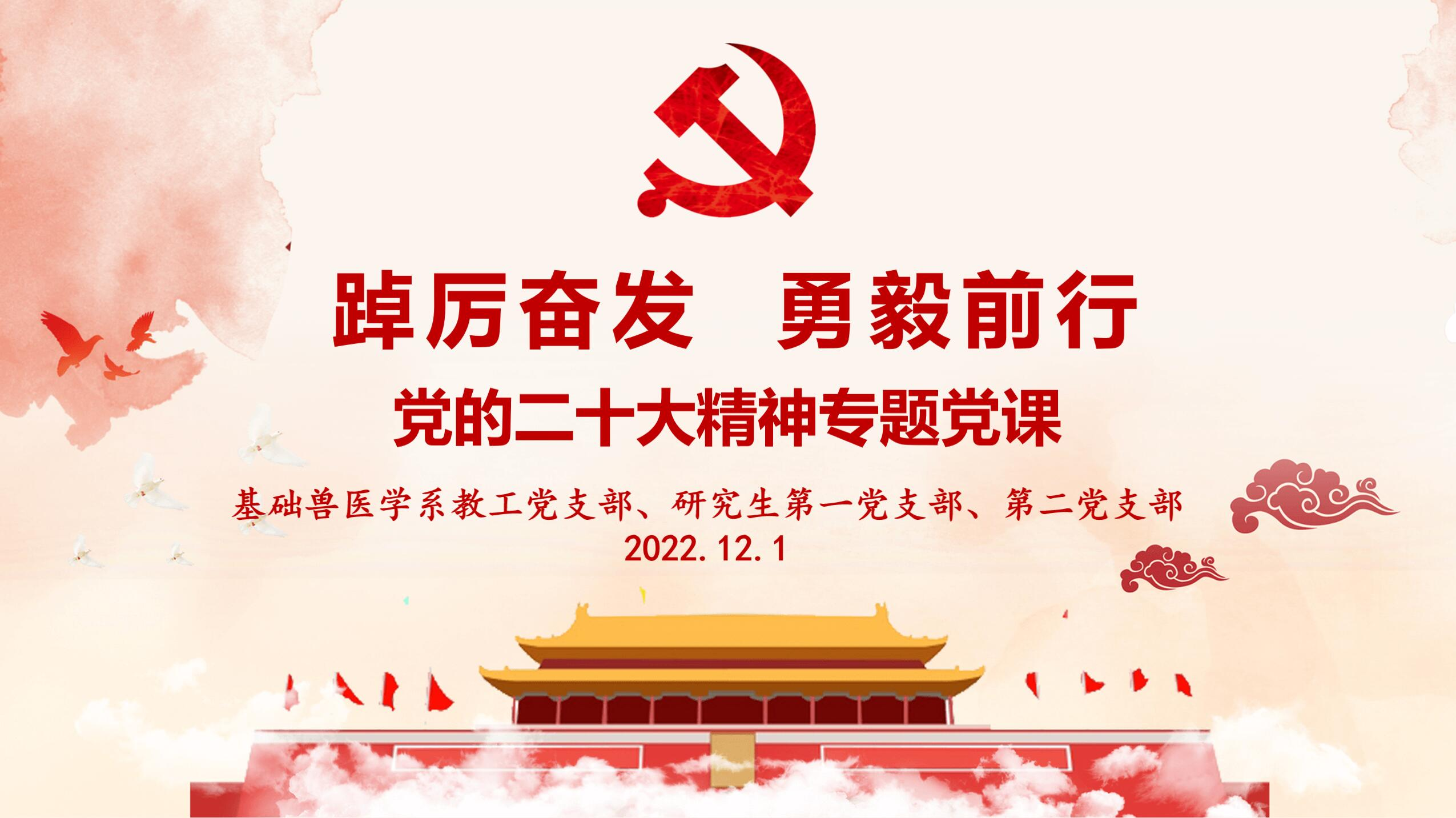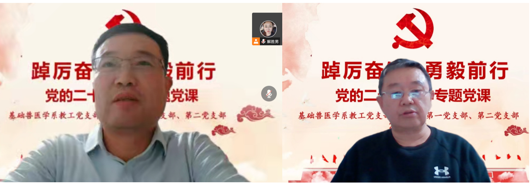 2022年12月1日,基础兽医学系教工党支部联合研究生党支部线上开展学习党的二十大精神主题党日活动。活动由基础兽医学系教工党支部书记宋德光教授主持,FUN88乐天使副经理贺文琦教授主讲党课。基础兽医学系教工党支部、研究生第一党支部、第二党支部全体党员及入党积极分子90余人参加线上活动。