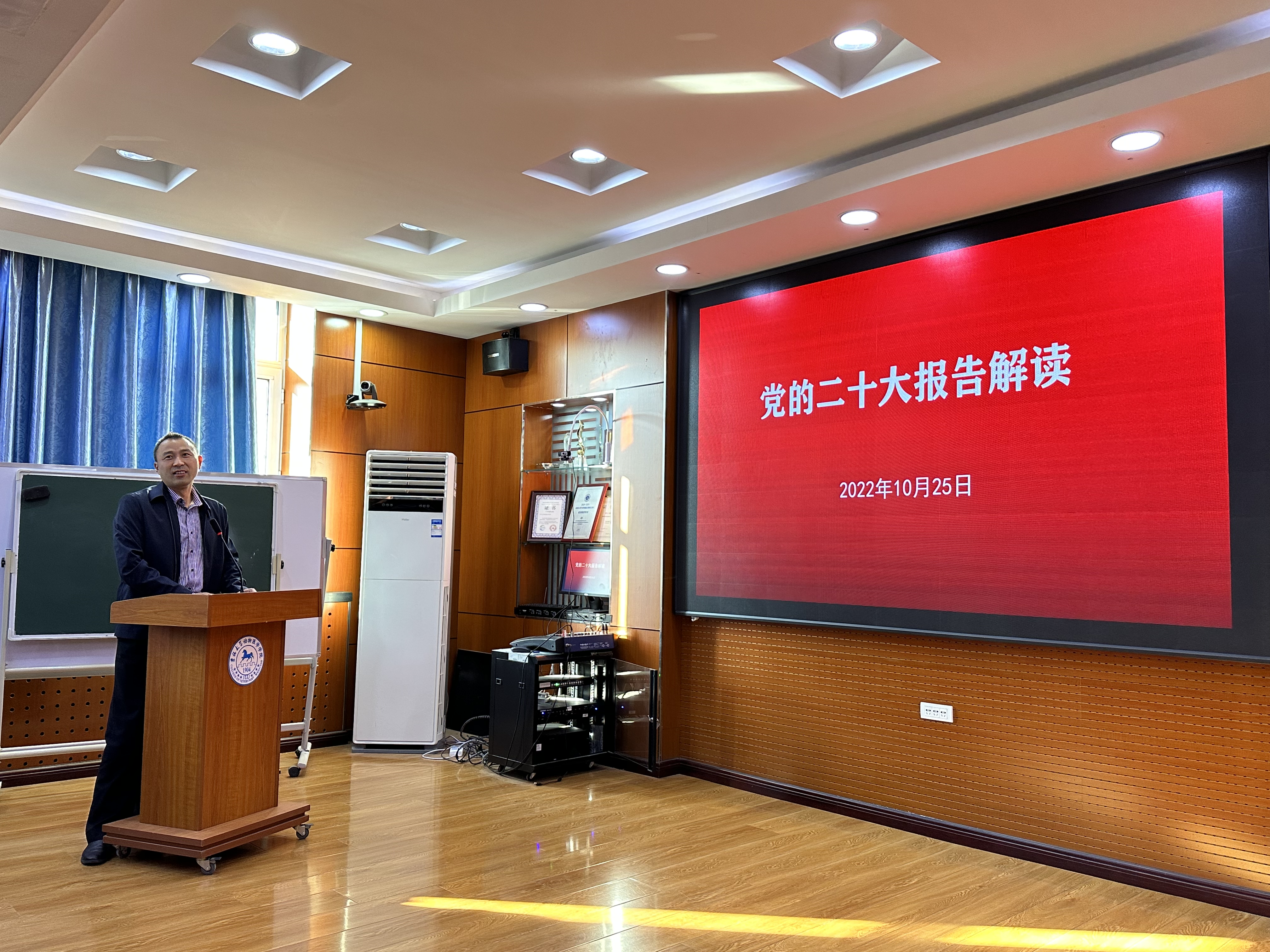 公司党委书记饶家辉同志结合自己学习体会,从党的历届代表大会的召开情况、二十大代表的构成与分布、党的二十大主要议程、习近平总书记在中国共产党第二十次全国代表大会上的报告的主要内容和核心要义等方面为与会人员详细解读党的二十大精神。着重阐释了“三个务必”“六个必须坚持”“五个必由之路”的概念和内涵以及学习宣传贯彻党的二十大精神的重大意义。他强调,学习领会党的二十大精神,必须坚持全面准确,坚持理论联系实际,深入理解内涵,精准把握外延,以习近平总书记提出的“五个牢牢把握”为切入点,不断加深对二十大报告精神的理解,从二十大报告中汲取推动发展的强大动力,一步一个脚印把党的二十大作出的重大决策部署付诸行动、见之于成效,用我们的力量为新时代新征程的伟大目标做出实际贡献。