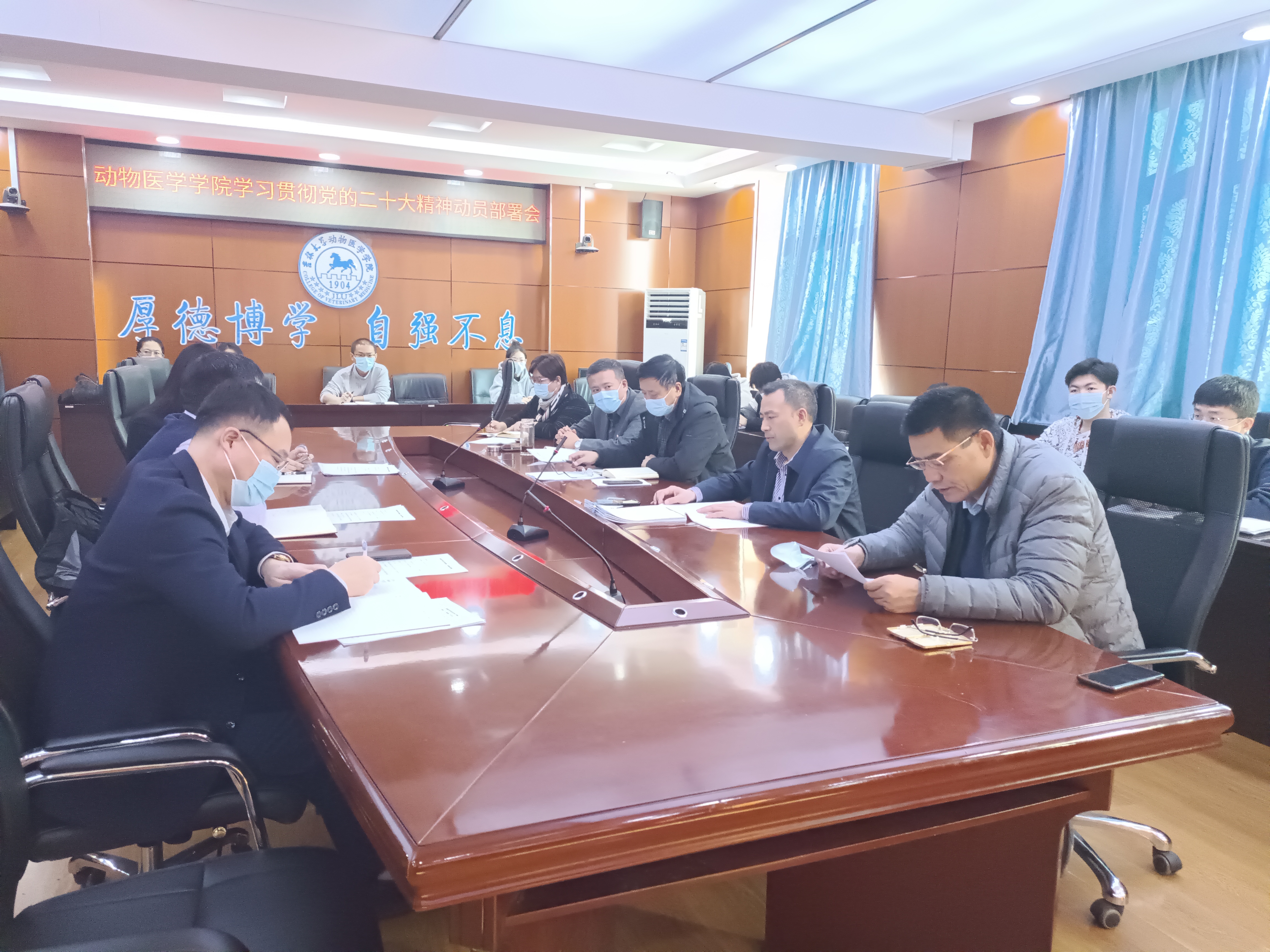 首先,由副经理李建华同志传达《中共中央关于认真学习宣传贯彻党的二十大精神的决定》,随后公司党委副书记兼副经理谭瑶同志宣读《动物医学公司党委学习贯彻党的二十大精神工作方案》。