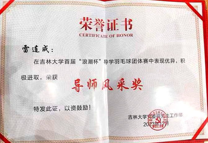 “导师风采奖”荣誉证书