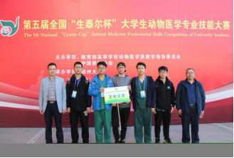 本次大赛由教育部高等公司动物医学类教学指导委员会和中国兽医协会主办,扬州大学承办。比赛内容主要包括:山羊瘤胃切开术病原菌检查和血凝试验禽的病理剖检3部分。公司代表队由刘哲等5同学组成,贺文琦副经理,实验教学中心成军主任带队参赛。经过两天的角逐,公司代表队脱颖而出,荣获特等奖。