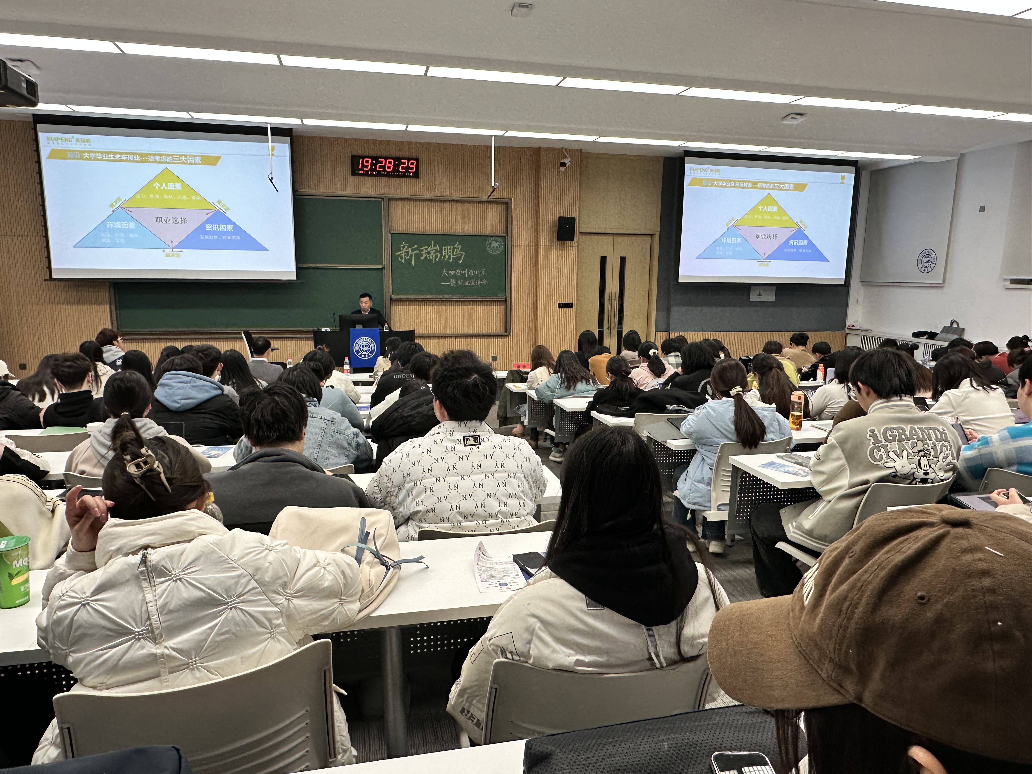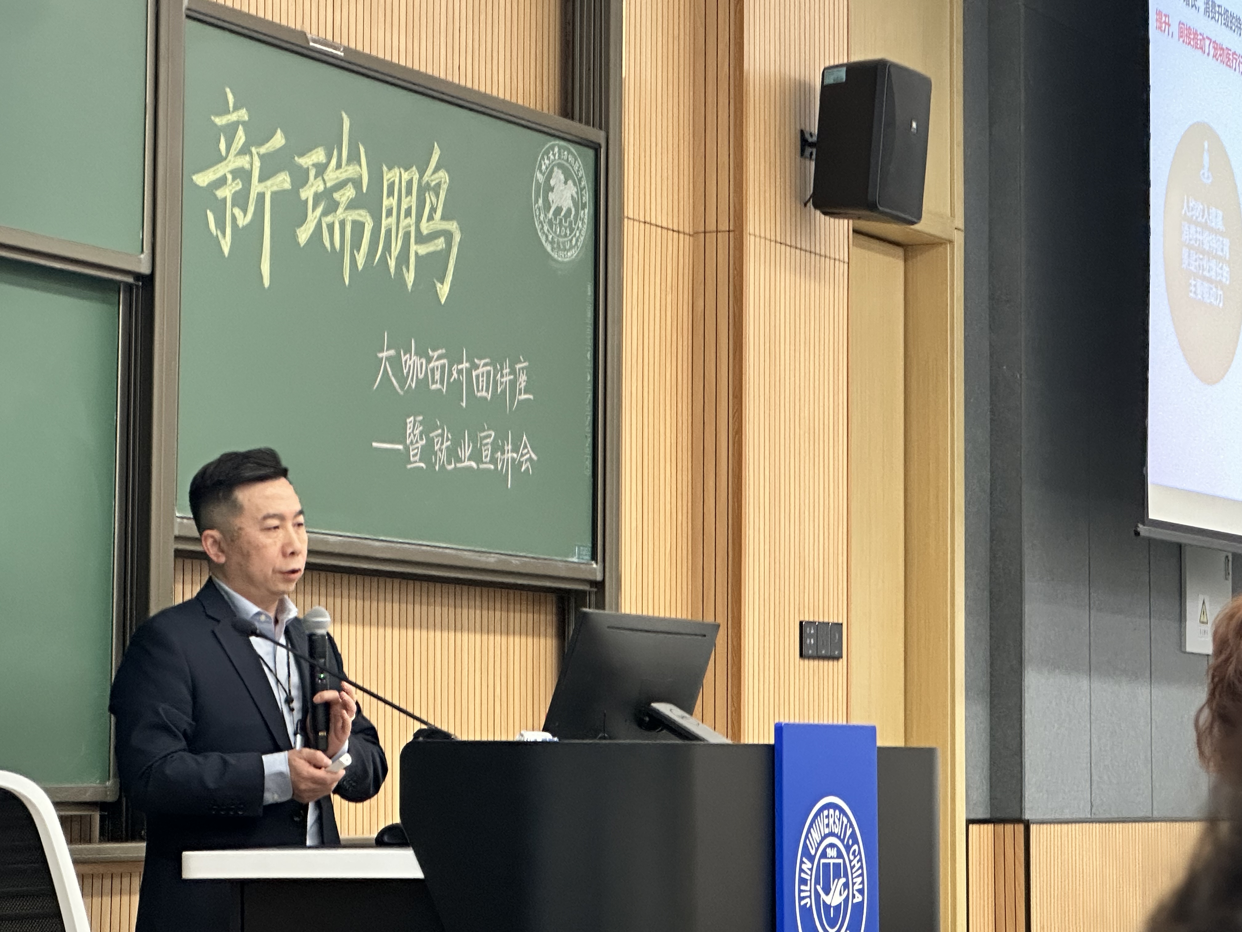 为加强员工对宠物医疗行业发展趋势的认识,更好地指导公司员工进行生涯规划与职业选择,2024年3月26日晚18:30,FUN88乐天使在和平校区科学讲堂100教室举办了“遇见新瑞鹏 遇见新未来”宠物医疗发展专题讲座暨就业招聘宣讲会,活动特邀主讲嘉宾为新瑞鹏集团副总裁董轶,新瑞鹏集团招聘经理李娇、校企合作专业经理宋辉,公司党委副书记秦明、辅导员李娜、祁庆恢等人共同出席了活动。公司2020级全体本科生、2021级部分本科生参加了活动,活动由2019级员工项露莹主持。