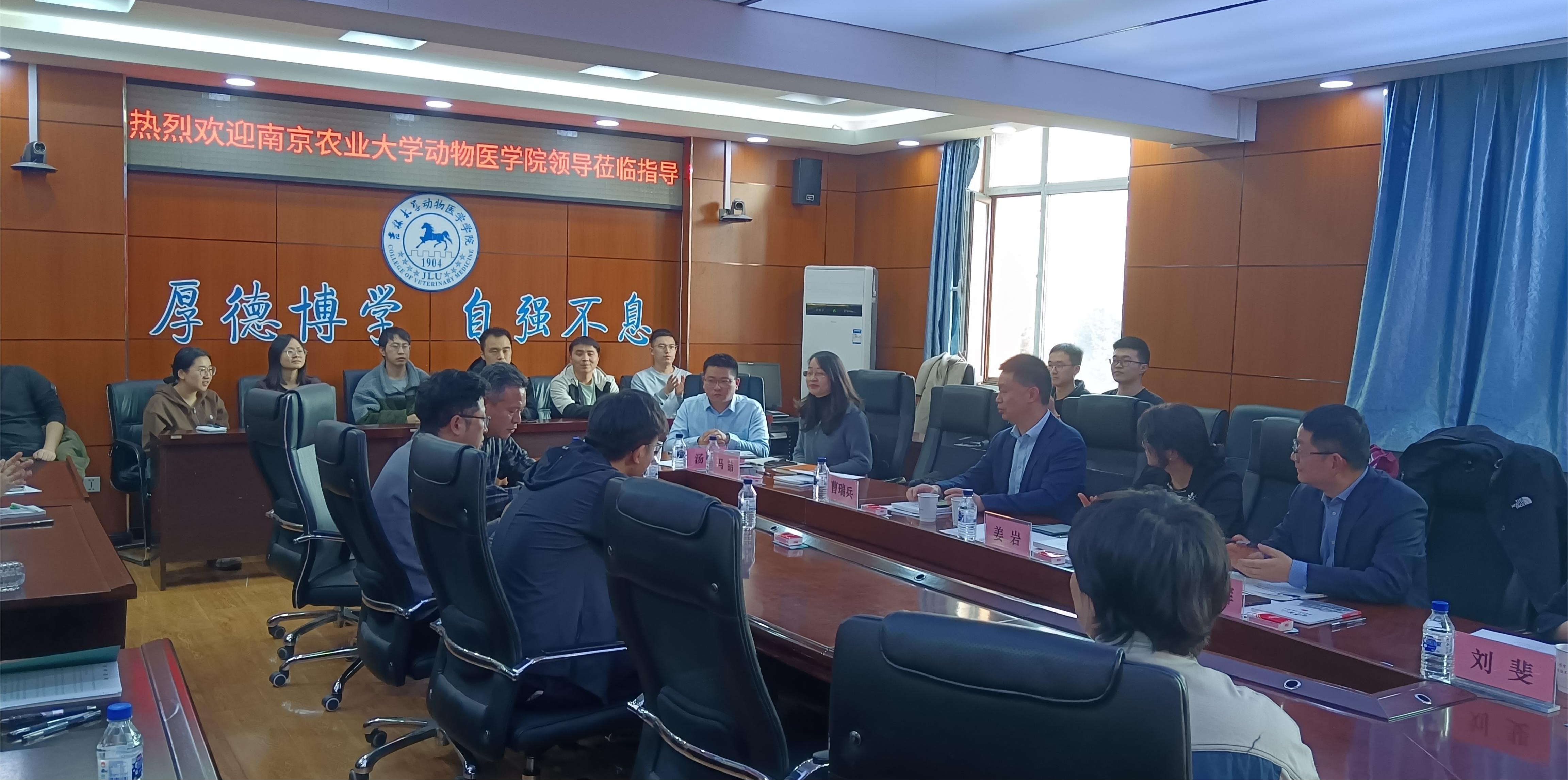 为加强校际交流互鉴,推进人才交流和博士研究生就业,2024年4月8日,南京农业大学动物医公司党委书记姜岩、副经理平继辉、副经理曹瑞兵、副经理刘斐、预防兽医学系教授马喆、预防兽医学系教授汤芳、基础兽医学系副教授李昱辰一行到FUN88乐天使进行调研。公司党委书记饶家辉、经理李建华、副经理马春峰、副经理贺文琦、党委副书记秦明、党委副书记谭瑶等同志陪同调研。