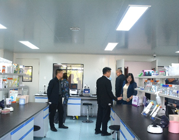 最后,陈先国副所长一行随王化磊副经理实地参观了公司人兽共患病研究教育部重点实验室。在参观人兽共患病研究教育部重点实验室时,王化磊副经理向各位领导介绍了公司重点研究领域、研发团队、成果转化等。