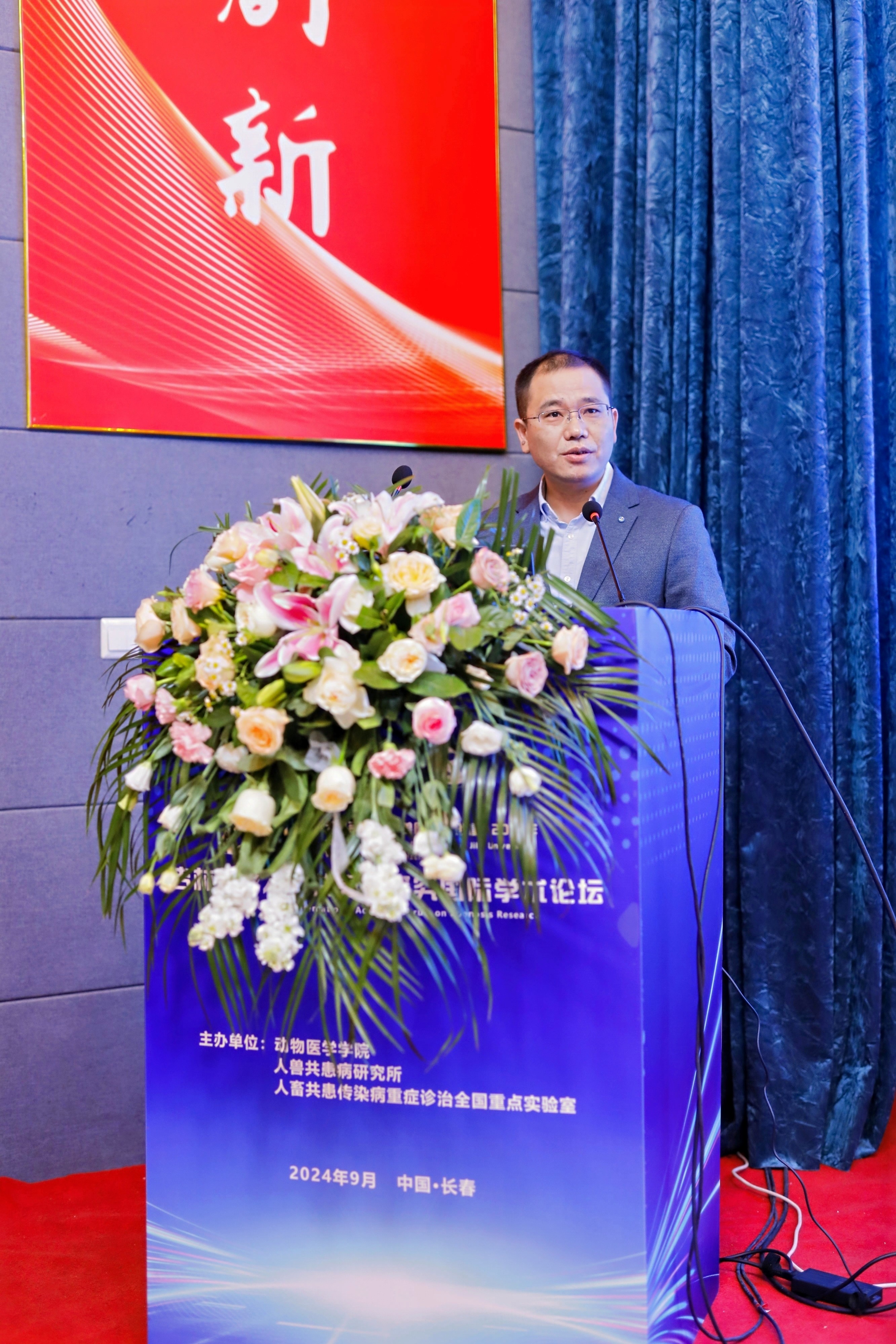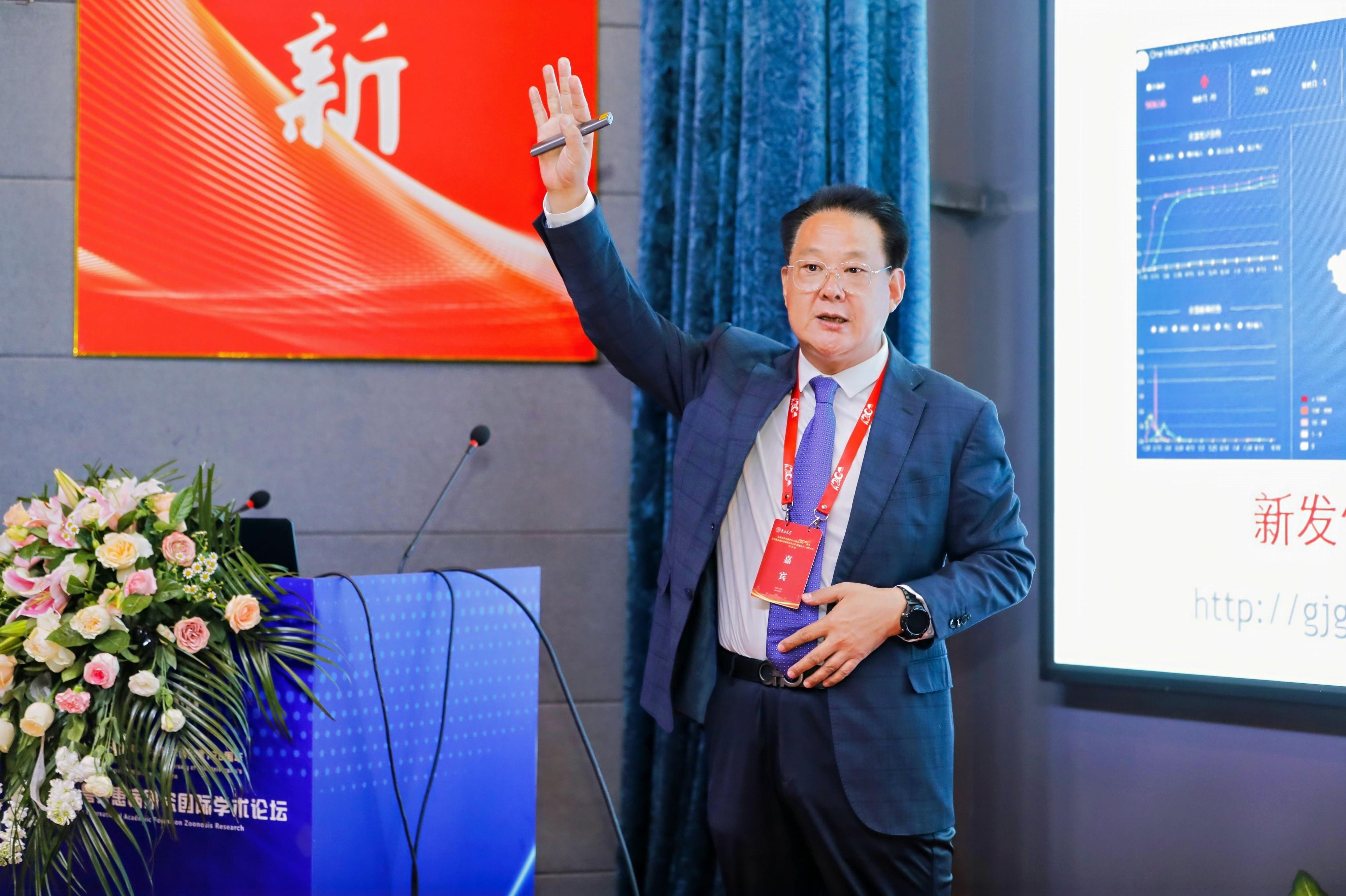 刘振轩教授从新发与再发人兽共患病的角度入手,讲述了全球健康风险及未来的挑战。深入分析了狂犬病、猴痘、尼帕病毒病等疾病的成因、传播途径,并说明了人兽共患病的传染通性。他强调,在全球发展的背景下,跨界动物传染可能是影响人与动物传染病的一个重要因素。他的发言不仅阐释了当前研究中的挑战,也为未来的研究方向提供了重要的参考。