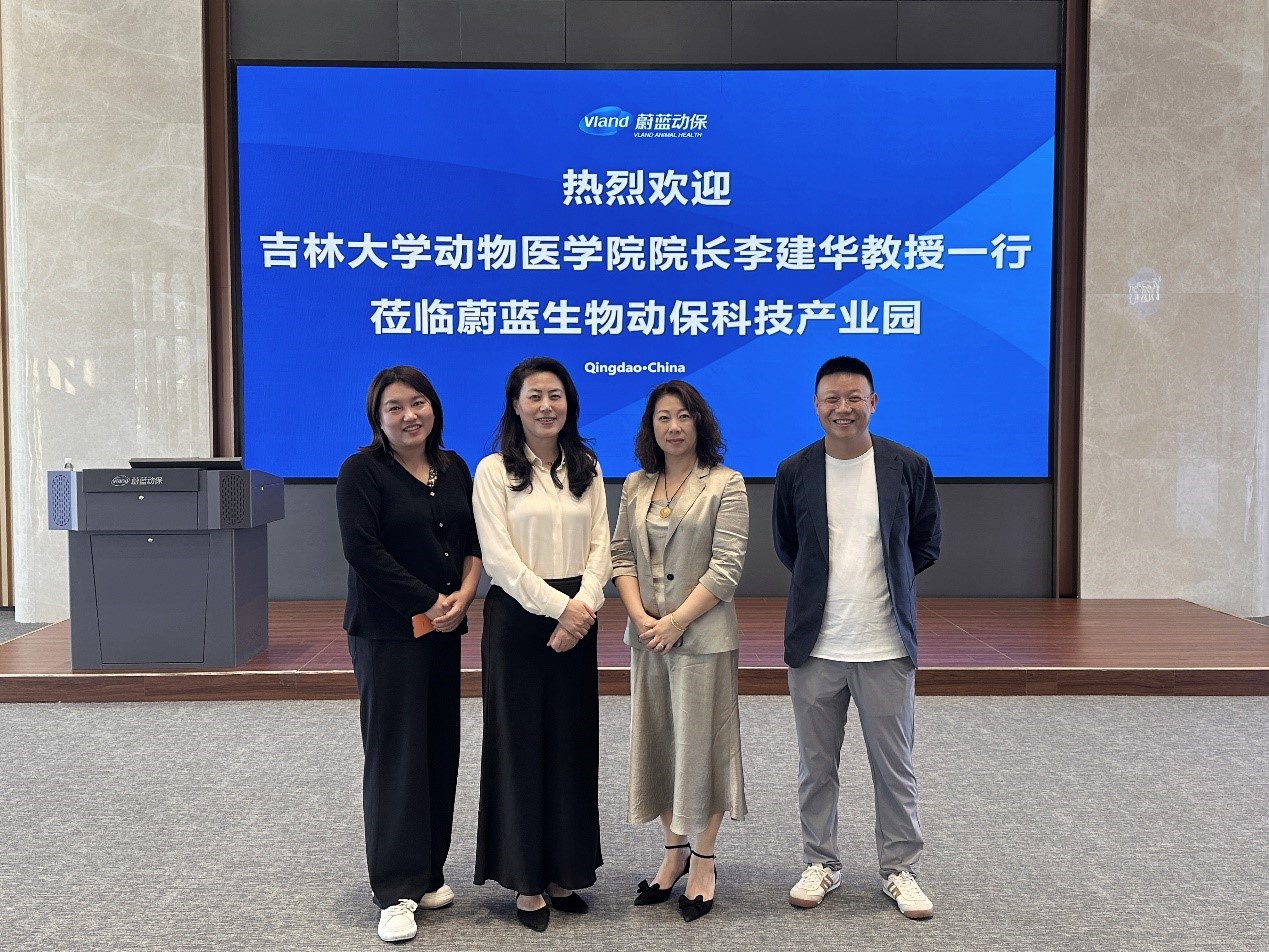 仪式后,参会人员一行前往蔚蓝生物动保科技有限公司进行实地参观。双方就产学研合作模式、科研项目对接、人才培养计划等议题展开座谈,进一步深化合作意向。蔚蓝生物动保科技有限公司丛雁芳经理表示,将在人才培养、技术研发、实验平台共享等方面与FUN88乐天使展开更紧密的合作。