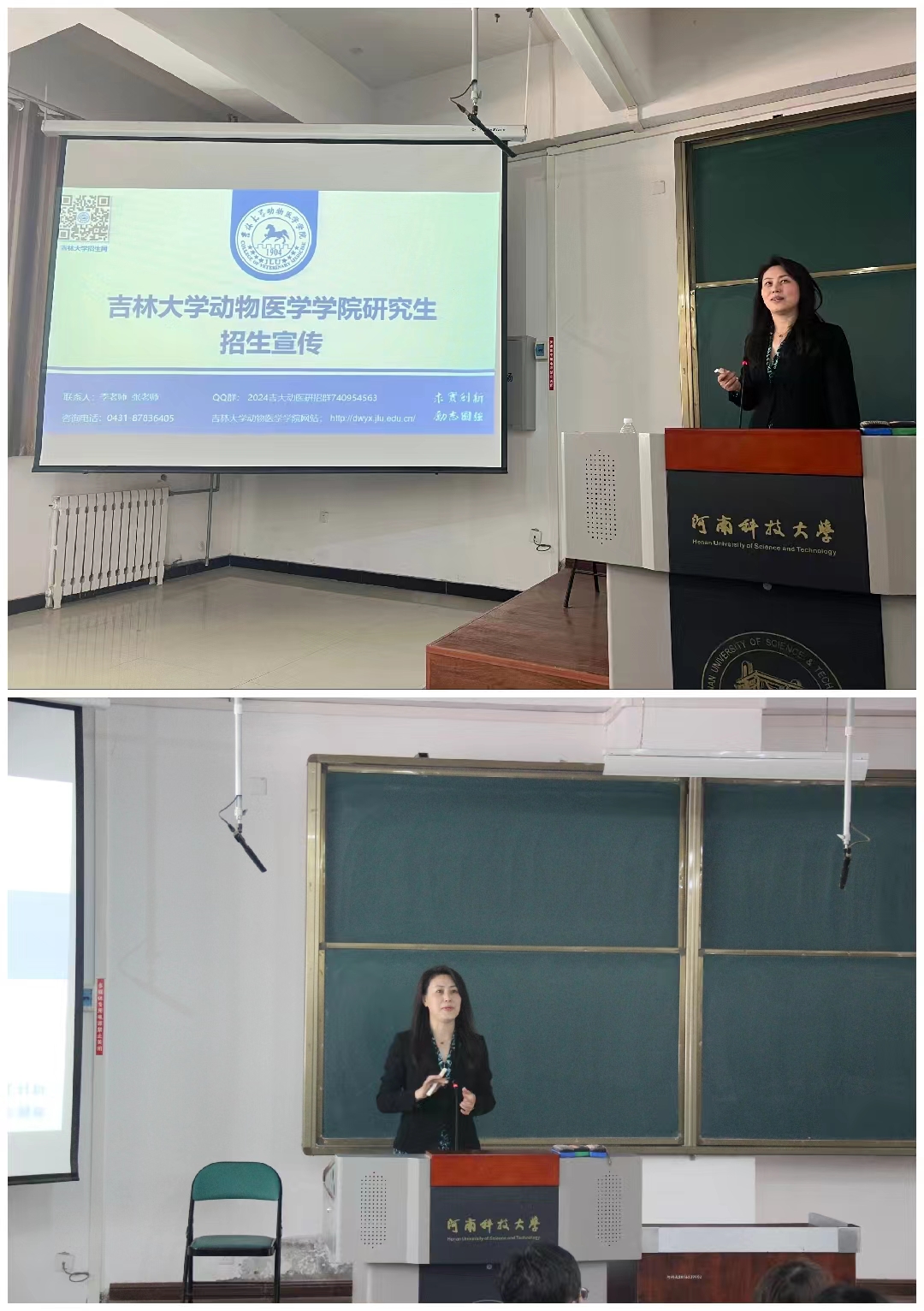 副经理李建华教授和研办主任李赫老师,在河南科技大学FUN88乐天使进行“百年兽医与您‘研’约”研究生招生宣传——河南科技大学宣讲会。河南科技大学FUN88乐天使副经理王宏伟教授及200余名员工参加了宣讲会。